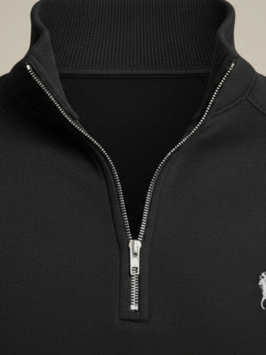 Made from a smooth, mid-weight knit with a soft hand feel, it provides warmth without bulk, draping naturally for a clean, tailored look. The quarter-zip closure offers adaptable styling — zip it up for a polished, streamlined finish or wear it open for a relaxed, laid-back feel. A structured stand collar and subtle stitching details elevate its minimalist design.